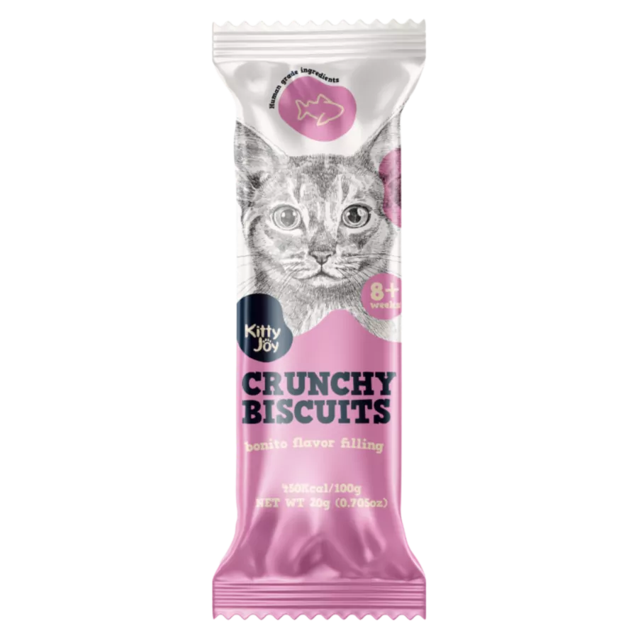 Kraukšķīgi cepumi ar bonito tunča garšas pildījumu kaķiem, 20 gr. Gardums piemērots arī kaķēniem no 8 nedēļu vecuma. Izgatavots no augstākās kvalitātes izejvielām. Palīdz uzturēt zobu veselību un higiēnu, mazinot zobu aplikumu un zobakmens veidošanās risku. Palīdz atsvaidzināt kaķa elpu un stiprināt žokli. Satur Omega 3 un Omega 6 taukskābes, minerālvielas, vitamīnus un olbaltumvielas.