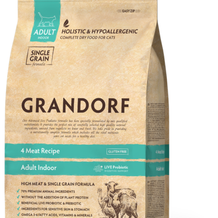 GRANDORF Adult Indoor sausā barība ar 4 veidu gaļu